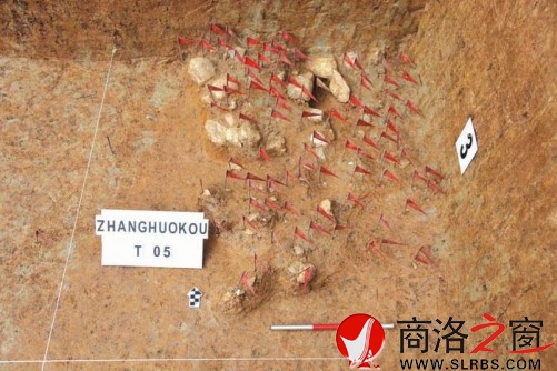 2011年4~10月,陜西省考古研究院、中國科學院古脊椎動物與古人類研究所、洛南縣博物館和南京大學在榆林-商洛高速公路洛南-岔口鋪段引線孟洼舊石器遺址搶救性發掘間隙,時隔10余年之后,對附近南洛河干流與南部支流縣河之間第二級階地的“四十里梁塬”地帶再次進行了詳盡的舊石器遺址普查工作。調查過程中,意外地在城關鎮中心村張豁口地點已建成民居旁前期開挖的長20余米、高約2米的黃土地層剖面上,采集到包括兩面修理刃緣的手鎬在內的數十件石制品。由于該地點為新規劃的農村宅基地和道路建設范圍,鑒于鄉村道路和民宅建設的緊迫性,遂對遺址一面展開試掘,一面向國家文物局提起搶救性發掘的申請。