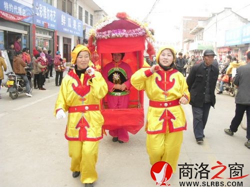 本網(wǎng)訊 (周鵬華)近日,丹鳳縣商鎮(zhèn)政府組織藝人挖掘民間花鼓小調(diào)的表演,依托婦女秧歌隊(duì)、儀仗隊(duì),向趕集的群眾展示商鎮(zhèn)婦女的巾幗風(fēng)采,傳承丹鳳花鼓藝術(shù)。圖為他們?cè)谂啪毜拿耖g花鼓小調(diào)《抬花轎》。