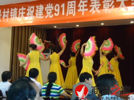 本網(wǎng)訊 (馬宏濤 劉亞亞)6月27日,洛南縣景村鎮(zhèn)隆重舉行慶祝建黨91周年表彰大會。他們對在推進農(nóng)業(yè)產(chǎn)業(yè)化建設(shè),新農(nóng)村和創(chuàng)新社會管理過程中,涌現(xiàn)出的5個先進基層黨組織、14名優(yōu)秀黨務(wù)工作者和55名優(yōu)秀黨員進行表彰獎勵。圖為該鎮(zhèn)干部群眾在慶祝大會舉行文藝匯演。