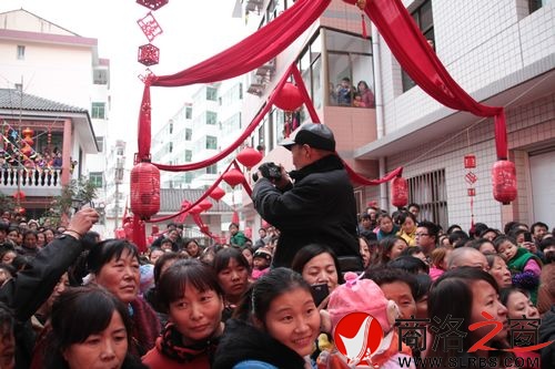 兄弟三人的“集體婚禮”在柞水縣城引起了轟動,距婚禮開始還有一個多小時,現(xiàn)場就聚集了幾百名前來祝賀的親友和好奇的居民,隔壁的居民也都趴在窗戶上,等待見證這場柞水縣城史無前例的婚禮。婚車經(jīng)過的沿途也都聚集了很多群眾,他們告訴記者,這么大的喜事誰都想親眼看看,跟著沾沾喜氣,這樣的婚禮看著比來了明星還要激動。