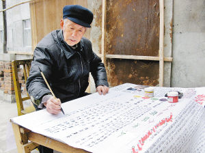 近日,記者在商州南街的商州區委老干局家屬院大門西側看到,這里有一個用鋼管和鐵皮焊接成的白色板報架,上面貼著最近一期的“中老年園地”。張貼的板報分為4版,用工整的毛筆字寫在白紙上,頭版是黨的十八大相關信息,二版至四版分別為黨史故事及各類保健知識等,不時有路人駐足觀看。據了解,23年前,在商州區離休老干部屈世民的倡導下,十多位老人捐了400多元錢,購買筆墨紙硯、整修板報架子,辦起了板報,以發揮余熱,宣傳黨的各項方針政策以及豐富老年人的精神文化生活。如今已辦了262期。其間,屈世民老人因為組織關系轉移,人不在南街住了而退出,但他又推薦了區農機校退休教師祝永智“接班”。2006年,當初一起辦板報的楊金屏老人去世。葛忠仁、王煥煒和祝永智3位老人繼續辦板報直到現在。(西安晚報 胡利強)