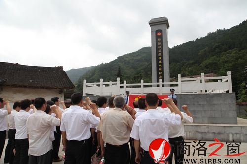 商洛日報訊(王榮金)7月1日,山陽各級黨組織紛紛舉行建黨92周年紀念活動。圖為縣國土資源局黨支部30多名黨員,在袁家溝鄂陜邊區蘇維埃政府紀念碑前重溫入黨誓詞。