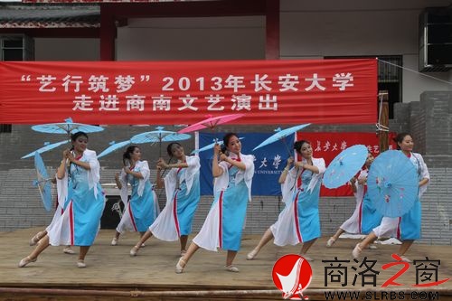 商洛日報訊(崔海飛)7月18日,長安大學大學生藝術團在商南縣泉茗度假區舉行了一場精彩的文藝演出,藝術團的師生們表演的歌舞、相聲、器樂演奏等節目贏得全場觀眾們的陣陣掌聲。