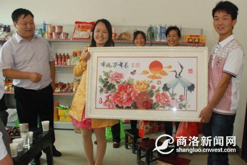 聽說孫培龍和妻子王瑞是商洛唯一一對上了星光大道的夫妻,他們一時成了山村里的新聞人物,周圍的群眾和移民戶紛紛前來觀看,高興地問長問短。在孫培龍家,商南縣委副書記崔華鋒問寒噓暖與隨行人員參觀了孫培龍新樓的每個房間,為孫培龍贈送了價值1500元的題有“幸福萬年長”的大堂刺繡裝飾品,同時給孫培龍多病的母親送上了水果、副食等慰問品。(商洛新聞網)