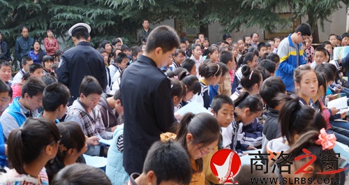 商洛日報(bào)訊(雷文濤 楊 萍)近日,丹鳳縣茶房中學(xué)舉行交通安全暨法制報(bào)告教育活動,向?qū)W生發(fā)放交通安全知識手冊,幫助學(xué)生提高安全出行意識。