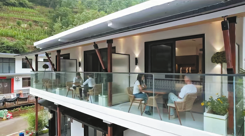 在距銀杏樹不到100米處,五彩斑斕的山溝里,精致漂亮的觀山民宿建筑群格外引人注目。“今年,我們銀杏谷流轉了10戶民房,在保留陜南農家民房特色的基礎上,融合了民宿建設的全新理念、時下流行的時尚元素,打造了高端觀山民宿,主要由‘見山’‘聞水’‘清心’‘悅己’4個院子組成,以親近自然為特點,房間均有露臺,屋頂設計了露天天臺,可近距離觀山賞月。”觀山民宿項目負責人介紹,7月份試運營以來,吸引當地村民30多人參與民宿業態運營管理,帶動效應十分明顯,10月份國慶長假期間生意火爆。